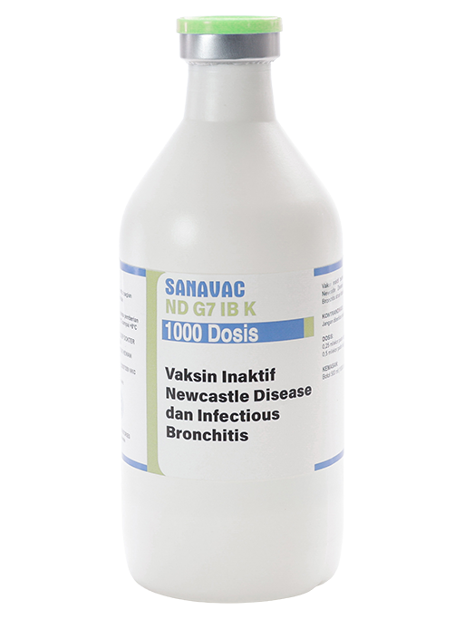 SANAVAC ND G7 IB K merupakan vaksin inaktif berbentuk emulsi mengandung virus Newcastle Disease Genotipe VII dan virus Infectious Bronchitis Strain Massachusetts H52