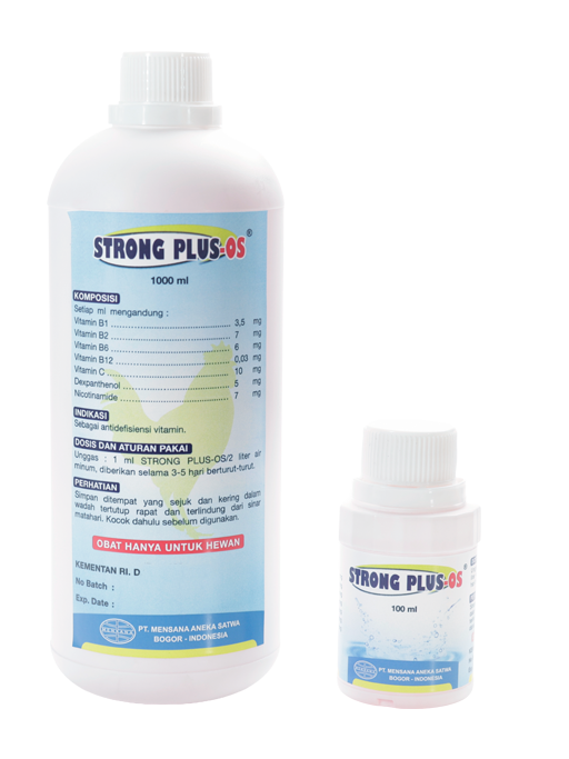 STRONG PLUS-OS mengandung vitamin B komplek lengkap dalam bentuk cair sehingga tepat dan mudah diserap untuk memenuhi kebutuhan vitamin B komplek pada hewan.