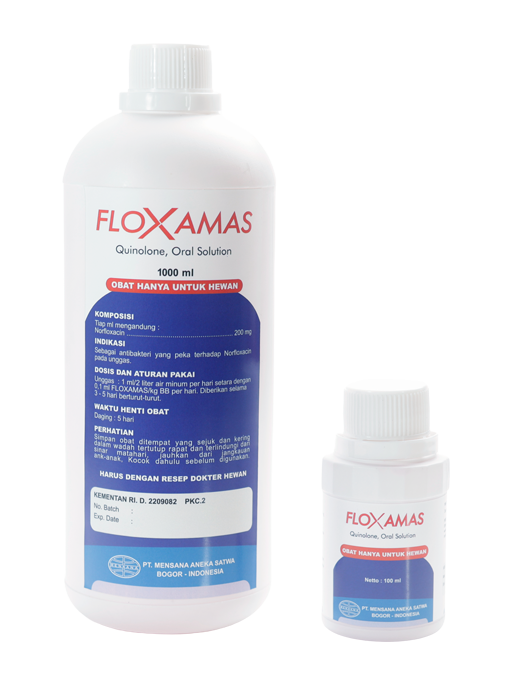 FLOXAMAS termasuk dalam golongan Fluoroquinolone yang bersifat bakterisidal sehingga cepat mengatasi penyakit berat pada ternak