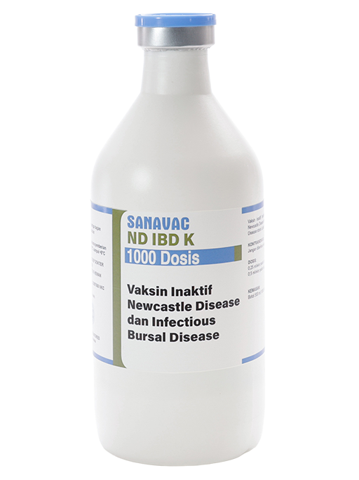 SANAVAC ND IBD K merupakan vaksin inaktif berbentuk emulsi mengandung virus Newcastle Disease Strain LaSota dan virus Infectious Bursal Disease Strain Lukert